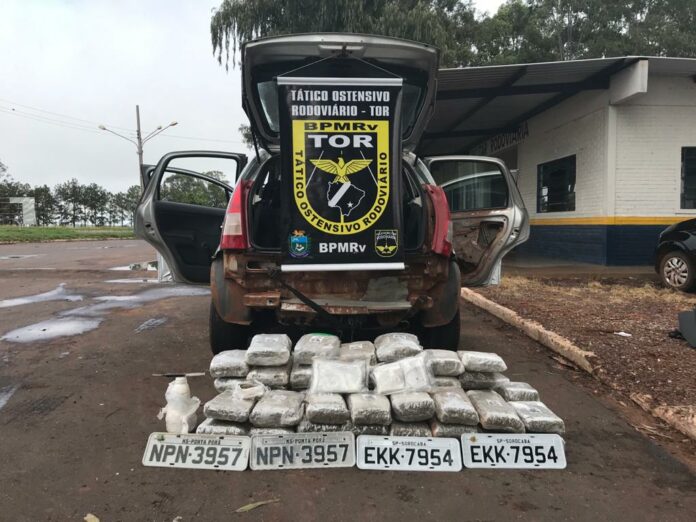 Uma equipe do Tático Ostensivo Rodoviário apreendeu 57 quilos de Skunk e 1 de haxixe além de recuperar um veículo com placas adulteradas em Ponta Porã na manhã da segunda-feira (31).