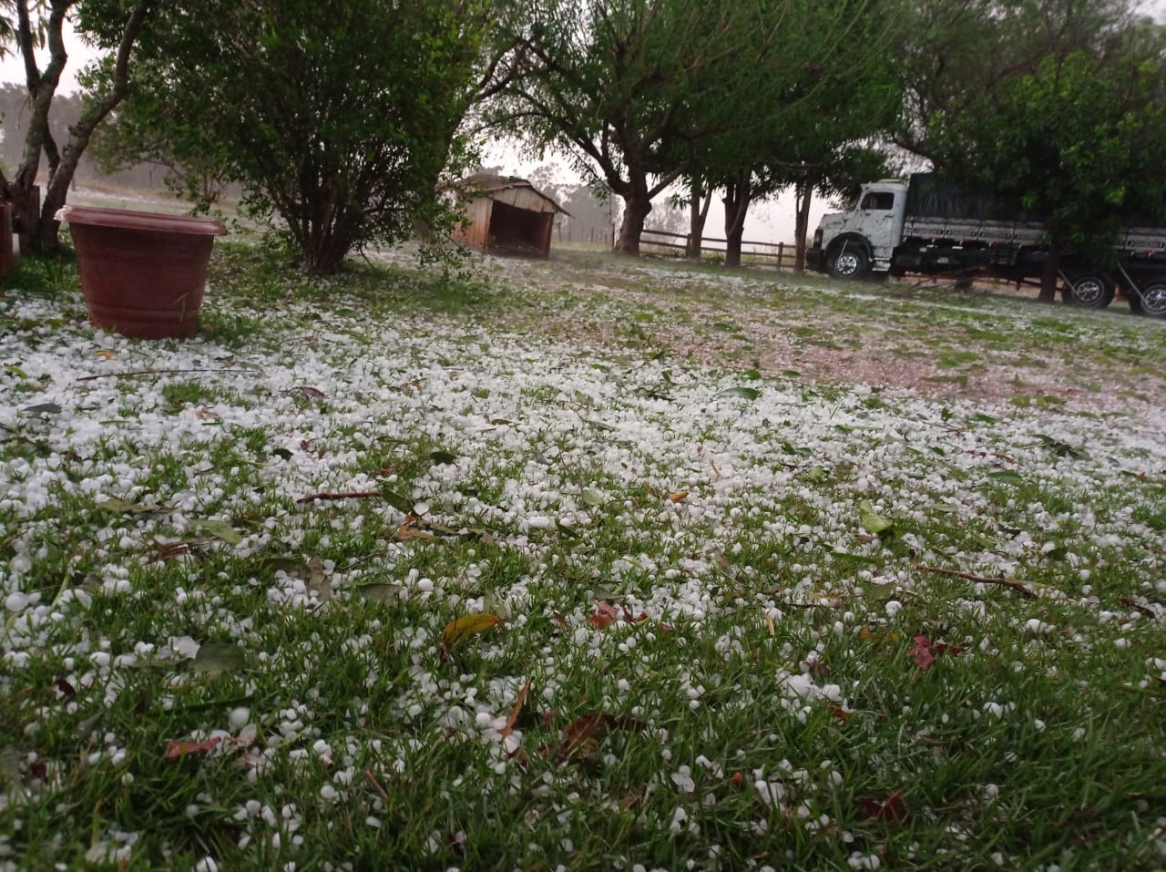 Na sexta-feira (22), a região da fronteira com o Paraguai também sentiu os efeitos da mudança climática. Na zona rural dos Assentamentos de Itamarati e Amparo, ambos em Ponta Porã, houve registro de granizo. Fotos enviadas ao site EnfoqueMS mostram que as pedras de gelo tinham o tamanho de um limão e provocaram estragos na plantação.