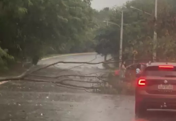 Um temporal atingiu Campo Grande no fim da tarde deste domingo (2), por volta das 16 horas, e trouxe transtornos para quem passava pela Avenida Afonso Pena. Árvores e um poste de energia caíram em frente ao Monumento Indígena do Parque das Nações Indígenas, bloqueando totalmente o sentido Parque dos Poderes e deixando o trânsito paralisado.