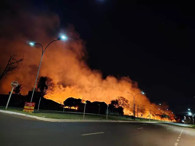 Um incêndio de grandes proporções consumiu uma área de vegetação localizada na Avenida Rita Vieira, em Campo Grande. A ocorrência começou ainda na madrugada desta quinta-feira (22).