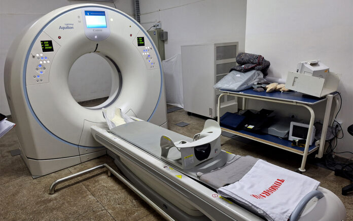 A Secretaria Municipal de Saúde de Corumbá informa que o tomógrafo da rede municipal será substituído por um novo equipamento. A retirada do aparelho atual e as adequações necessárias para a instalação do novo já tiveram início, com previsão de conclusão até o dia 23 de janeiro.