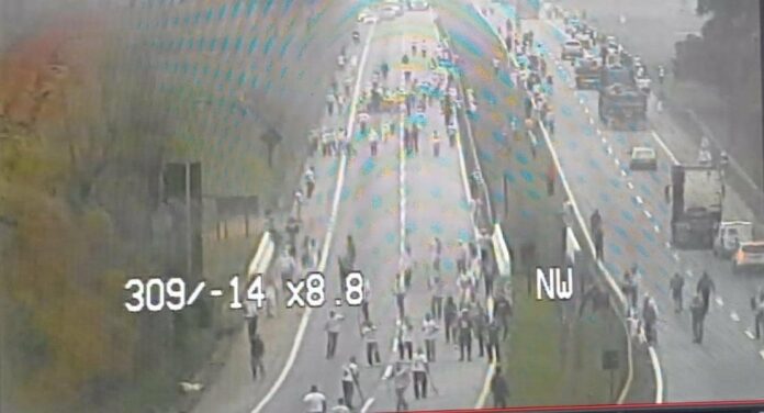 Câmeras de segurança da rodovia registraram toda a briga, que envolveu dezenas de torcedores, todos homens, sendo que muitos estavam armados com pedaços de madeira, faca, canivetes e também usavam fogos de artíficios.