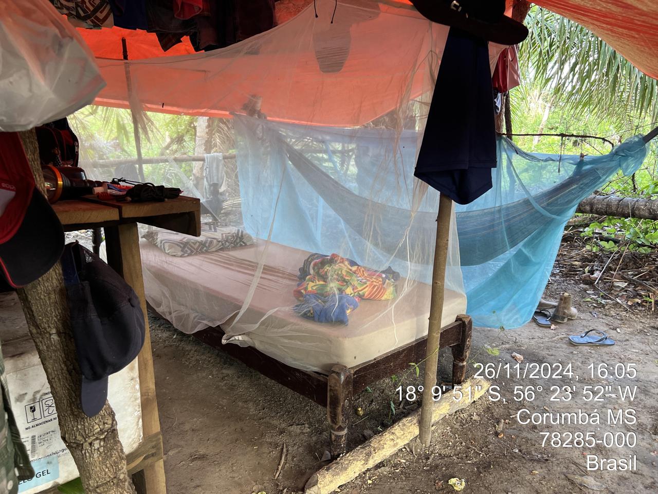Os alojamentos eram improvisados com lonas, sem qualquer proteção contra animais ou condições climáticas adversas, e não havia instalações sanitárias ou água para banho.