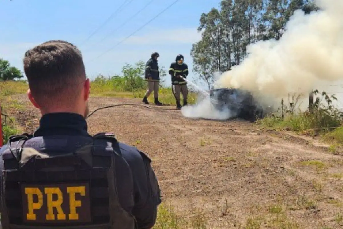 Segundo a PRF, a equipe deu ordem de parada ao motorista no km 130 da BR-163, mas ele desobedeceu e iniciou fuga. Os agentes realizaram acompanhamento tático por aproximadamente 1,5 quilômetro, quando perceberam que o condutor havia colocado fogo no próprio carro ainda em movimento.