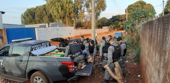Em continuidade com a fuga, o condutor foi alcançado e preso no bairro Centenário. O Uno estava abarrotado de maconha, somando 607,4 quilos.