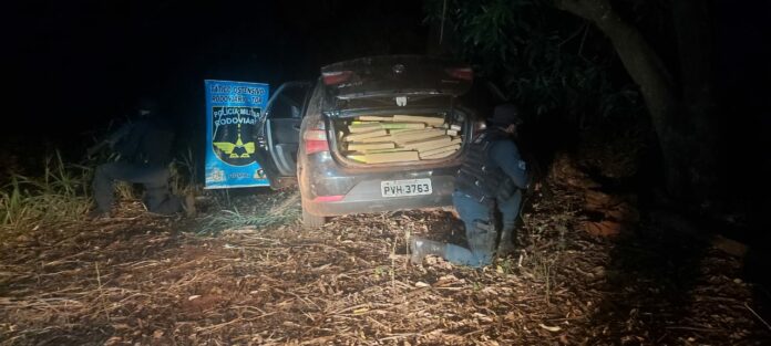 Já o veículo Golf foi alcançado e o motorista impedindo de fugir. Em vistoria aos veículos, a equipe da PMR localizou diversos tabletes de maconha.