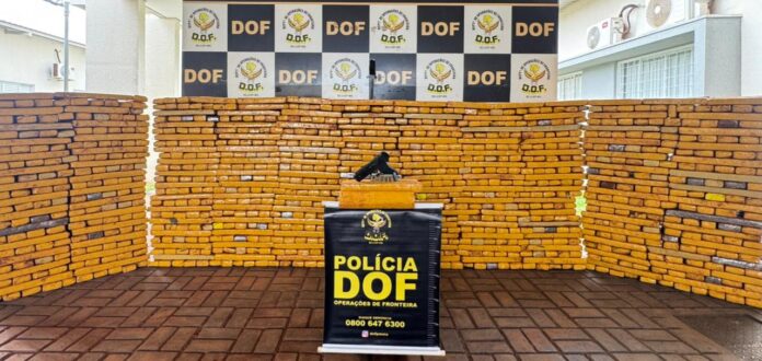No interior do veículo foram encontrados diversos tabletes de maconha, que após a pesagem totalizaram mais de 1.800 quilos. Constatou-se também que as placas eram falsas e a caminhonete havia sido roubada em 2024, na cidade de Sertãozinho (SP).