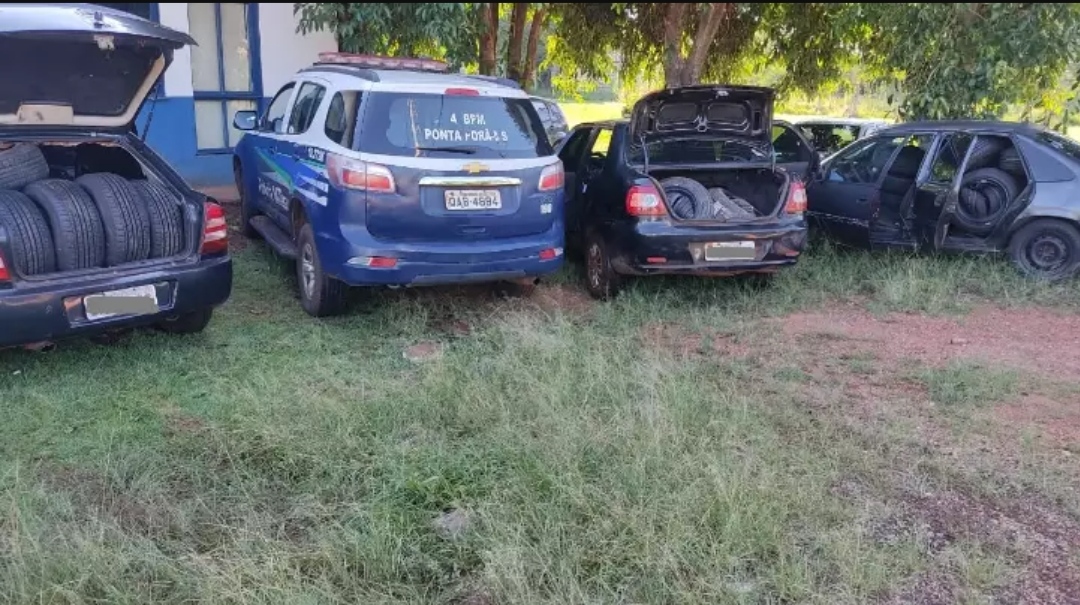 Na madrugada desta sexta-feira (18), três carros abarrotados de pneus contrabandeados foram apreendidos pela Policial Militar de Ponta Porã.