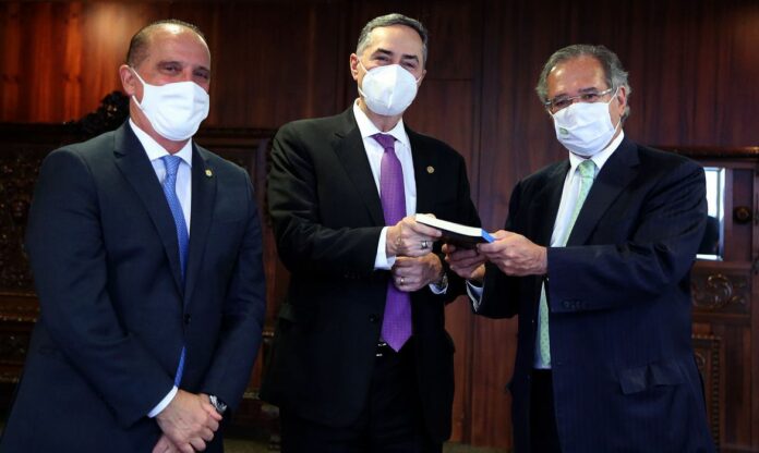 Presidente do TSE e ministros Guedes e Lorenzoni participaram de ato