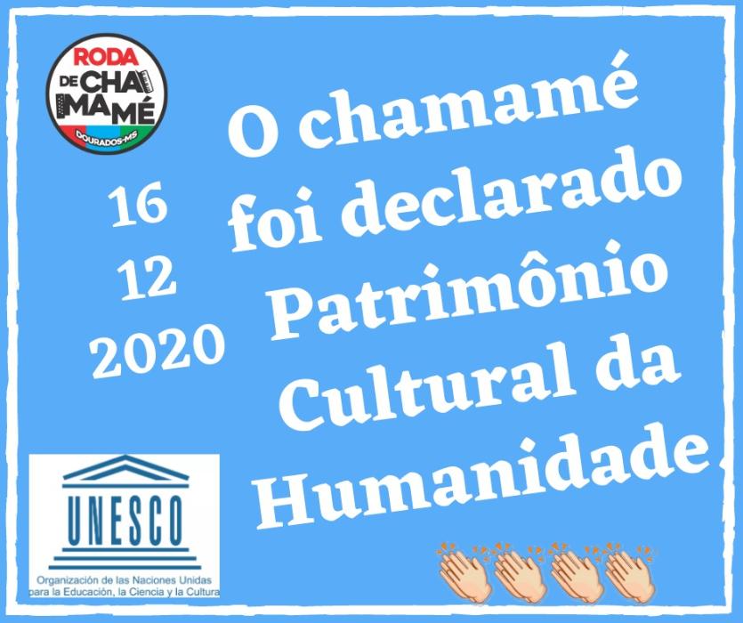 A Unesco, Organização das Nações Unidas para a Educação, a Ciência e a Cultura, reconheceu ontem (16/12), o chamamé como patrimônio cultural imaterial da humanidade. O gênero musical é original de Corrientes (Argentina) e muito popular no Paraguai, na Argentina, no Uruguai e na região do Brasil que faz fronteira com esses países, principalmente em Mato Grosso do Sul.