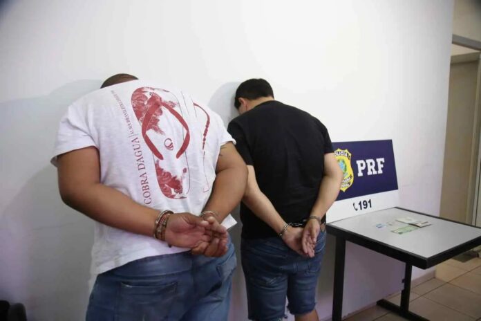 O motorista, de branco, e o traficant, de preto, foram presos (Foto: Redes Sociais)