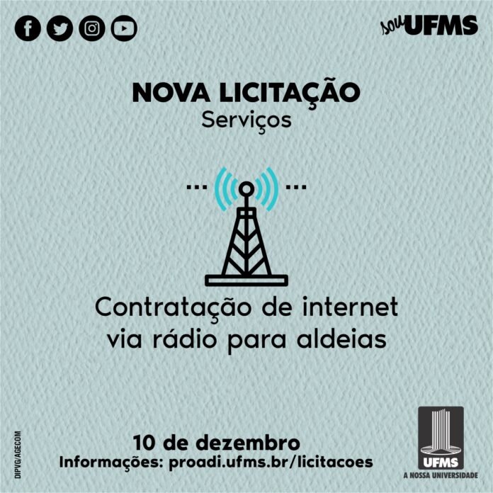 No próximo dia 10, a UFMS realiza pregão eletrônico para contratação de serviços de acesso à internet por link via rádio com capacidade mínima de 20 mbps para download e 20mbps para upload.
