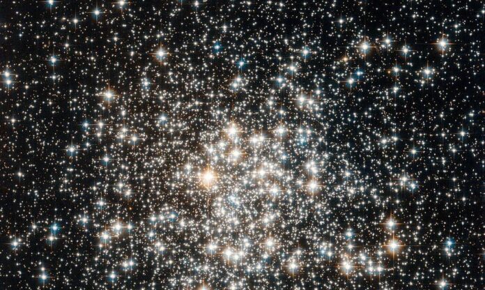 The NASA/ESA Hubble Space Telescope has captured a crowd of stars that looks rather like a stadium darkened before a show, lit only by the flashbulbs of the audience’s cameras. Yet the many stars of this object, known as Messier 107, are not a fleeting phenomenon, at least by human reckoning of time — these ancient stars have gleamed for many billions of years. Messier 107 is one of more than 150 globular star clusters found around the disc of the Milky Way galaxy. These spherical collections each contain hundreds of thousands of extremely old stars and are among the oldest objects in the Milky Way. The origin of globular clusters and their impact on galactic evolution remains somewhat unclear, so astronomers continue to study them through pictures such as this one obtained by Hubble. As globular clusters go, Messier 107 is not particularly dense. Visually comparing its appearance to other globular clusters, such as Messier 53 or Messier 54 reveals that the stars within Messier 107 are not packed as tightly, thereby making its members more distinct like individual fans in a stadium's stands. Messier 107 can be found in the constellation of Ophiuchus (The Serpent Bearer) and is located about 20 000 light-years from the Solar System. French astronomer Pierre Méchain first noted the object in 1782, and British astronomer William Herschel documented it independently a year later. A Canadian astronomer, Helen Sawyer Hogg, added Messier 107 to Charles Messier's famous astronomical catalogue in 1947. This picture was obtained with the Wide Field Camera of Hubble’s Advanced Camera for Surveys. The field of view is approximately 3.4 by 3.4 arcminutes.