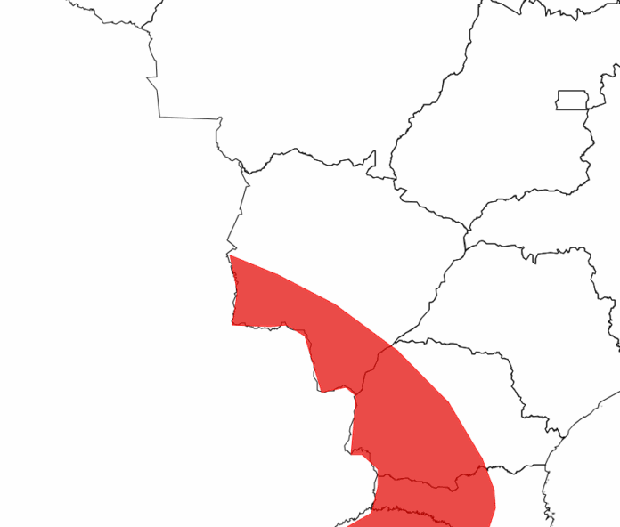 Conforme dito, o alerta está classificado na cor vermelha, de Grande Perigo, iniciando às 09h de domingo (16) e seguindo pelo menos até às 03h da segunda-feira (17). Ao todo, são 42 cidades na área de risco: