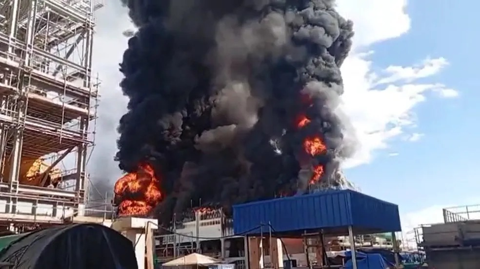 Segundo o Corpo de Bombeiros, que foi mobilizado para atender a ocorrência, as chamas teriam começado na torre de resfriamento da obra. Por conta dos produtos químicos usados na construção, uma densa fumaça preta tomou conta do local.