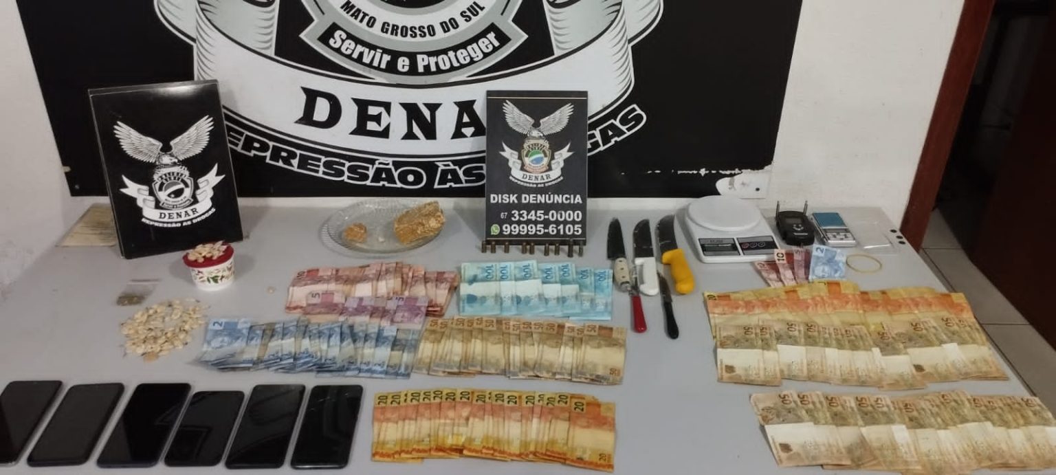 Drogas, dinheiro de espécie, telefones celulares e até facas foram apreendidas pela Delegacia Especializada de Repressão ao Narcotráfico (DENAR), em Campo Grande, durante uma ação realizada na data de ontem (24).