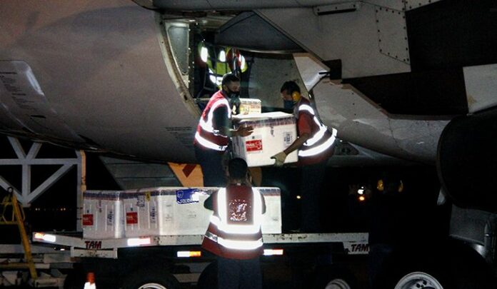 A Secretaria de Estado de Saúde, recebe do Ministério da Saúde, lote do imunizante Astrazeneca às 21h25 deste sábado (3). São 38 mil doses que desembarcarão no Aeroporto Internacional de Campo Grande.