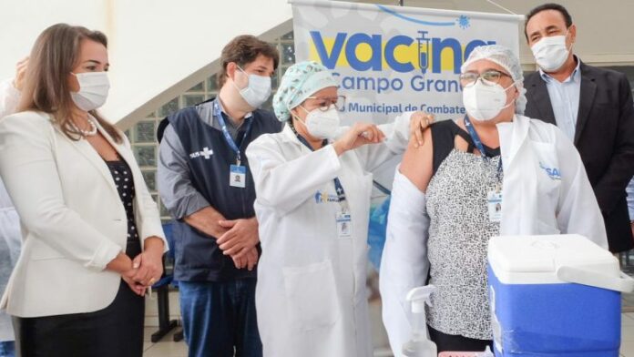 “A ampliação da vacinação para as unidades de Atenção Primária garante que não haja nenhum risco de que a assistência à população de Campo Grande pare por falta de pessoal para atendê-la”, comenta a vice-prefeita Adriane Lopes, que acompanhou o início da vacinação na Clínica da Família do Nova Lima.
