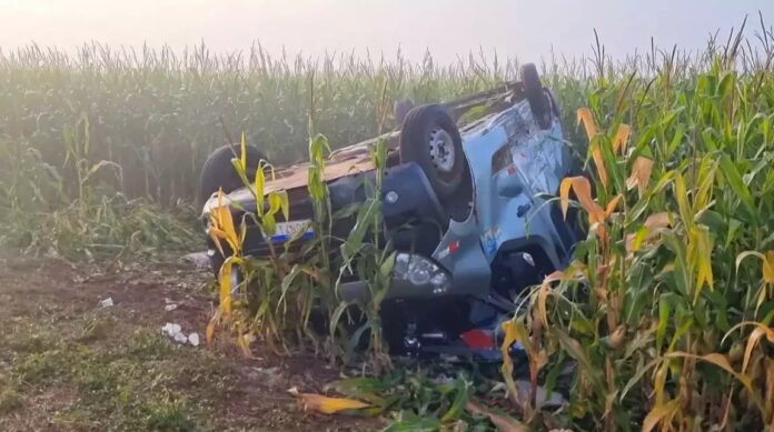 Van capota em acidente na MS-162, mata uma pessoa e deixa três gravemente feridos