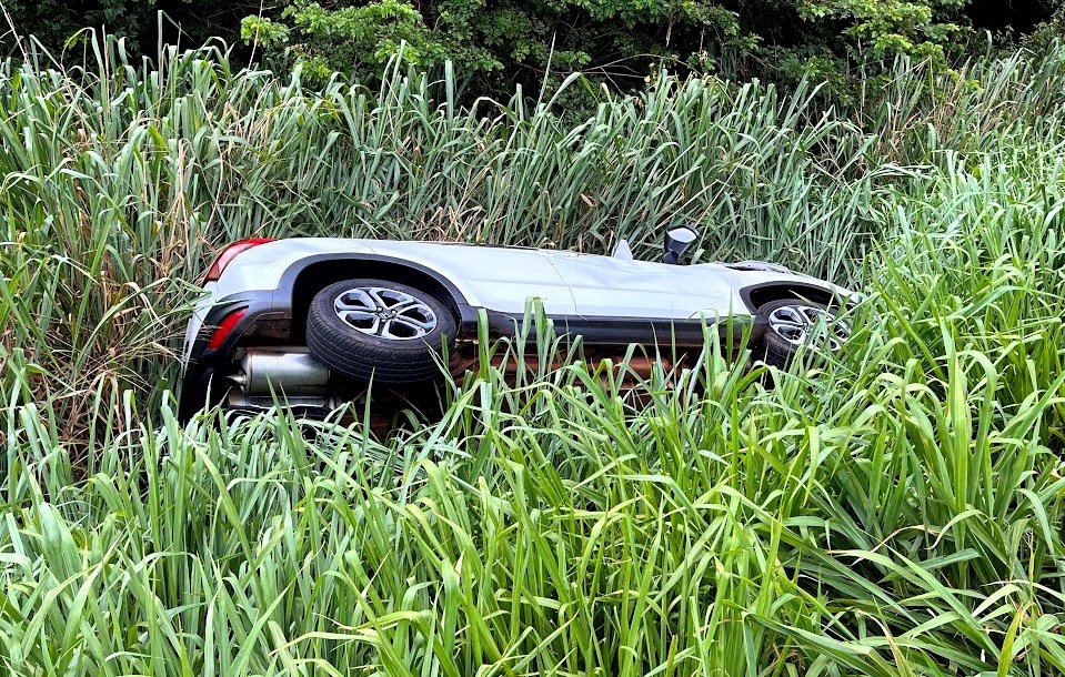 Veículo capota ao desviar de carro na contramão no distrito industrial de Ivinhema