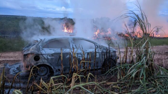 A polícia está investigando o desaparecimento de um comerciante, de 44 anos, na região de Nova Andradina. O veículo dele, modelo GM Ônix, foi encontrado incendiado na noite de ontem (22), mas nenhum corpo foi achado no local.