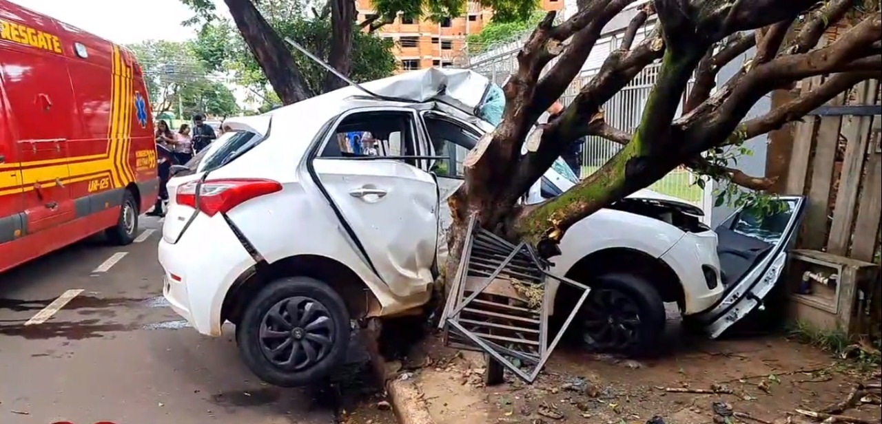 Um acidente de trânsito deixou uma pessoa presa nas ferragens na tarde desta quinta-feira (27), na região central de Campo Grande. De acordo com o registro da ocorrência, a motorista de um veículo HB20, de 21 anos, perdeu o controle da direção e acabou batendo contra uma árvore e uma lixeira de metal em frente a uma casa.