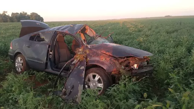 Um veículo ficou destruído nesse sábado (24) ao capotar várias vezes na rodovia estadual MS-316, na região de Paraíso das Águas. O casal que ocupava o carro, de 33 e 37 anos, sofreu ferimentos graves.