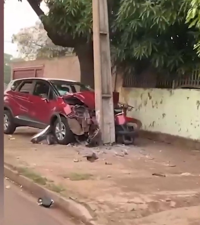 O acidente aconteceu por volta das 3h. Os moradores relataram que escutaram o forte barulho da pancada e, ao saírem, viram o carro batido no poste.
