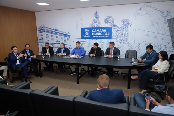 Os vereadores da Câmara Municipal de Campo Grande receberam, na manhã desta quinta-feira (4), o secretário municipal de Segurança e Defesa Social, Anderson Gonzaga, que prestou esclarecimentos sobre a atuação da Guarda Civil Metropolitana (GCM) no confronto registrado no último sábado (29), durante manifestação contra o Executivo na rua 14 de Julho. O encontro foi motivado por ofício apresentado pelo vereador Rafael Tavares, que solicitou a vinda do gestor à Casa de Leis.