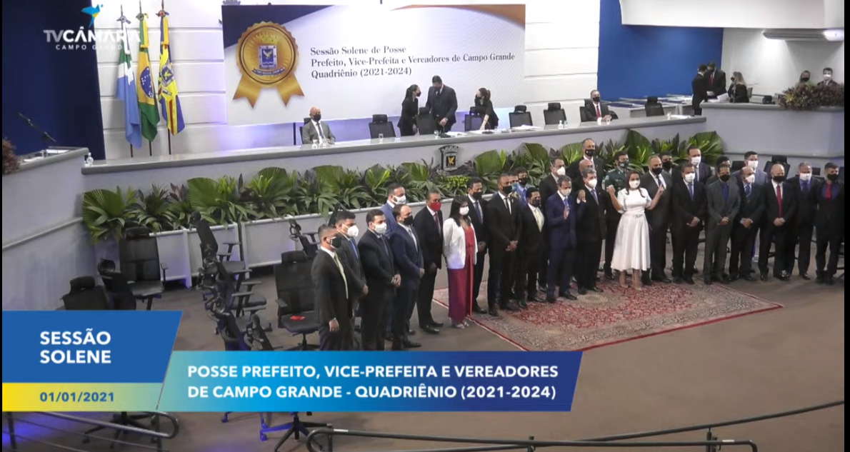 Os 29 vereadores eleitos e reeleitos para a Legislatura de 2021 a 2024, prefeito de Campo Grande, Marquinhos Trad e vice-prefeita Adriane Lopes foram empossados em solenidade na Câmara Municipal nesta sexta-feira (1º). Nos discursos, o destaque foi para a atuação independente, de forma harmônica, pensando no melhor para os campo-grandenses e honrando os votos recebidos. Por conta da pandemia do coronavírus, o evento foi fechado ao público, sendo transmitido pelo Facebook e Youtube da Casa de Leis.