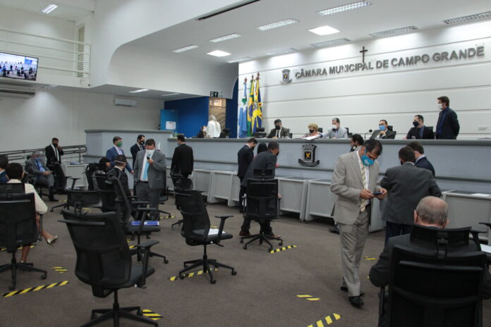 Vereadores da Câmara Municipal de Campo Grande votam dez Projetos de Lei nesta terça-feira (22), na última sessão ordinária da 10ª Legislatura. As sessões acontecem presencialmente no Plenário Oliva Enciso, mas como medida preventiva ao coronavírus permanecem fechadas ao público, podendo ser acompanhadas, às 9 horas, por meio da transmissão no Facebook (https://www.facebook.com/camaracgms) e no Youtube (https://www.youtube.com/camaramunicipalcg) da Casa de Leis.