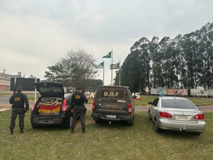 O flagrante aconteceu durante um bloqueio na rodovia estadual MS-156. A equipe parou um veículo, modelo Toyota Corolla prata, que seguia no sentido Amambai/Caarapó.