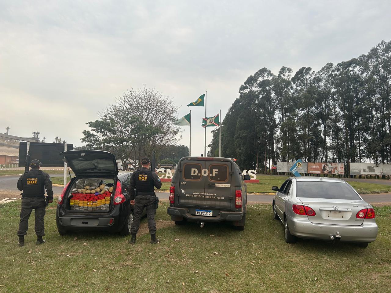 No interior do Palio foram encontrados 112,6 quilos de maconha e mais 8,2 quilos de skunk. A ocorrência foi registrada e entregue na Delegacia da Polícia Civil em Caarapó.