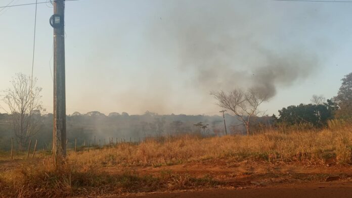 O fogo atingiu uma área localizada às margens do Córrego Segredo. Por conta do mato seco e da rajada de vento, rapidamente as chamas se espalharam. A fumaça alta podia ser vista de longe o encobriu a região, dificultando a respiração.