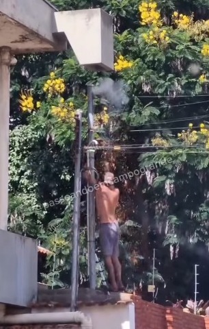 O fato aconteceu na Rua Boa Vista, região central da cidade. No vídeo, é possível ver o homem escalando o muro até chegar na ponta do padrão de energia.