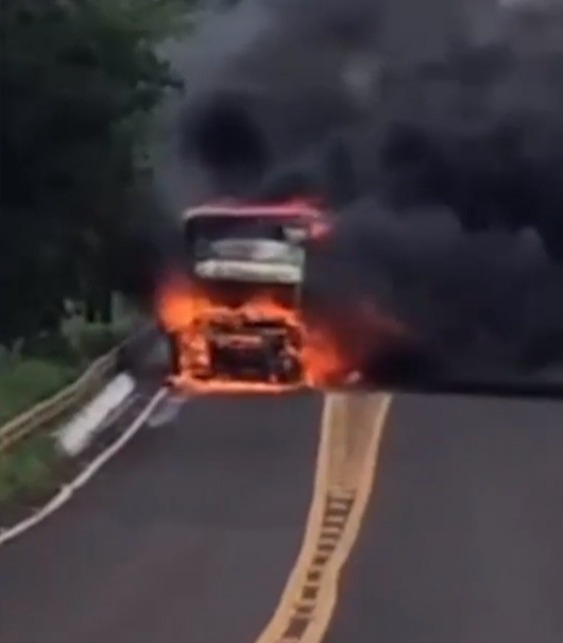 Veja o vídeo do caminhão pegando fogo publicado pelo site local Jardim MS News: