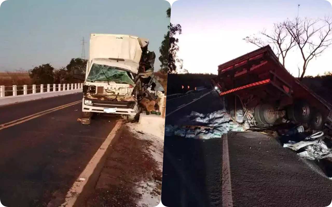 No local, houve um acidente de trânsito envolvendo dois caminhões que bateram de frente em cima da ponte sobre o Rio Indaiá.