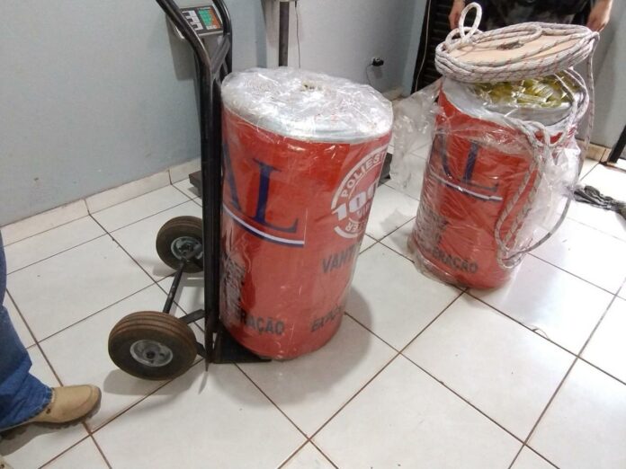 Segundo a ocorrência, durante a varredura no depósito, o cão indicou positivamente para dois fardos de bobinas de cordas de aproximadamente 1 mil metros cada um.