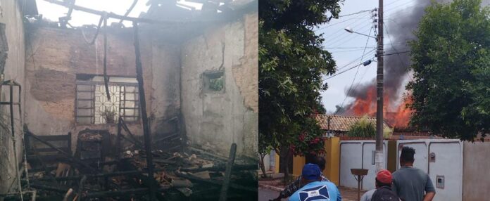 Uma casa ficou completamente destruída nesta sexta-feira (14), em Aquidauana, após ser atingida por um incêndio de grandes proporções. O imóvel está localizado na Rua Hélio Galan Fernandes, no Bairro da Serraria.