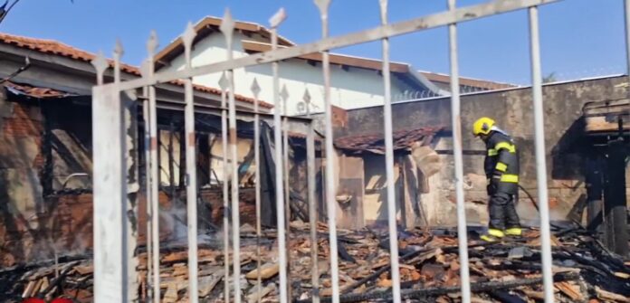 Uma casa ficou completamente destruída ao pegar fogo na manhã desta segunda-feira (05), em Campo Grande. Vizinhos indicaram que o imóvel estava abandonado e era utilizado por andarilhos e usuários de drogas.