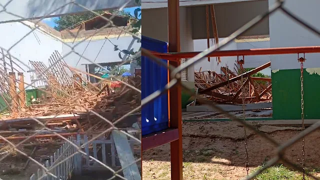 O teto inteiro de uma escola pública da Rede Municipal de Ensino (REME) de Miranda desmoronou na tarde de sexta-feira (15). Por sorte, como era feriado alusivo ao aniversário da Proclamação da República, não havia aulas e ninguém se machucou.