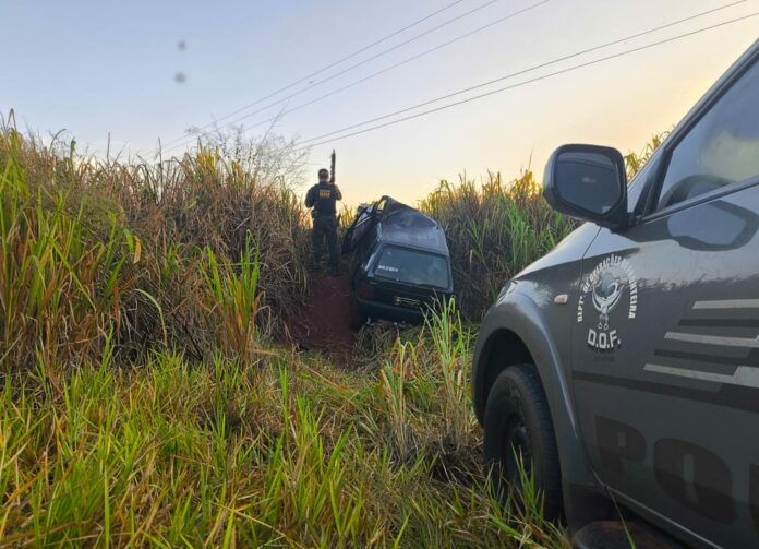 O flagrante aconteceu na rodovia federal BR-163, quando uma equipe viu um veículo, modelo Fiat Uno, abrir fuga ante a presença da viatura no caminho.