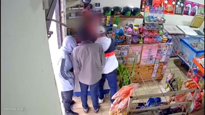 Toda a dinâmica foi gravada pelas câmeras de videomonitoramento do comércio. É possível ver o momento em que os homens chegam ao local em um carro, de cor prata, e um deles passa a conversar com a funcionárias.