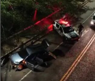 Vídeo: em fuga da PM, motorista destrói veículo ao bater em guard-rail de avenida no bairro Otávio Pécora
