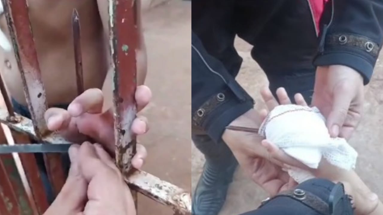 Vídeo: ferro de portão fica atravessado na mão de criança e mobiliza bombeiros