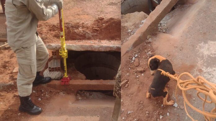 Equipes do Corpo de Bombeiros foram mobilizadas na manhã dessa sexta-feira (08), em Nova Andradina, para retirar um cachorro que acabou caíndo dentro de um sumidouro de água, com cerca de oito metros de profundidade.