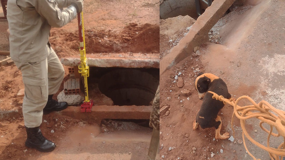 Testemunhas registraram a ocorrência e compartilharam as imagens pelas redes sociais. O cachorro, que é um filhote, foi salvo por uma corda e sem nenhum ferimento, porém, sujo de terra e carente de um banho.