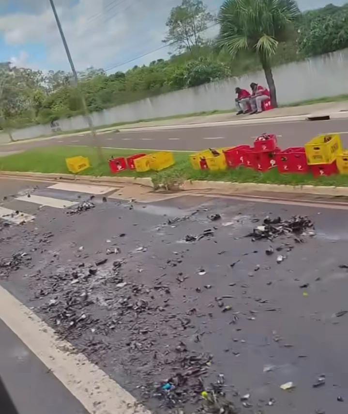 Os próprios funcionários fizeram a remoção da carga que não estragou e a limpeza dos vidros quebrados que ficaram esparramados na via. Nas redes sociais, seguidores usaram o bom humor: “que dó!”, escreveu uma pessoa. “Coração chega doer”, postou outra.