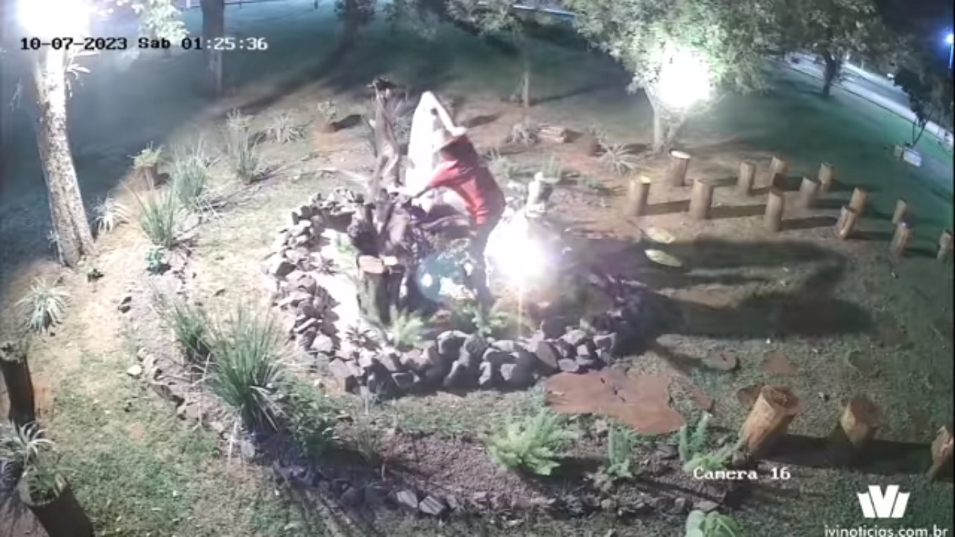 Veja o vídeo da destruição das imagens que foi compartilhado pelo site local Ivinotícias: