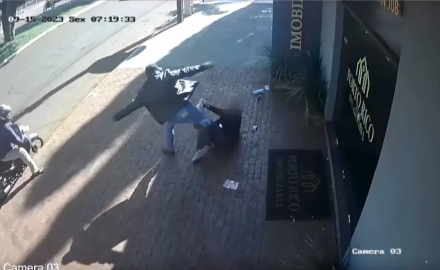 Na sequência, um motociclista que passava pela avenida e testemunhou a violência parou e partiu para cima do agressor, também derrubando-o e o segurando até a chegada das autoridades.